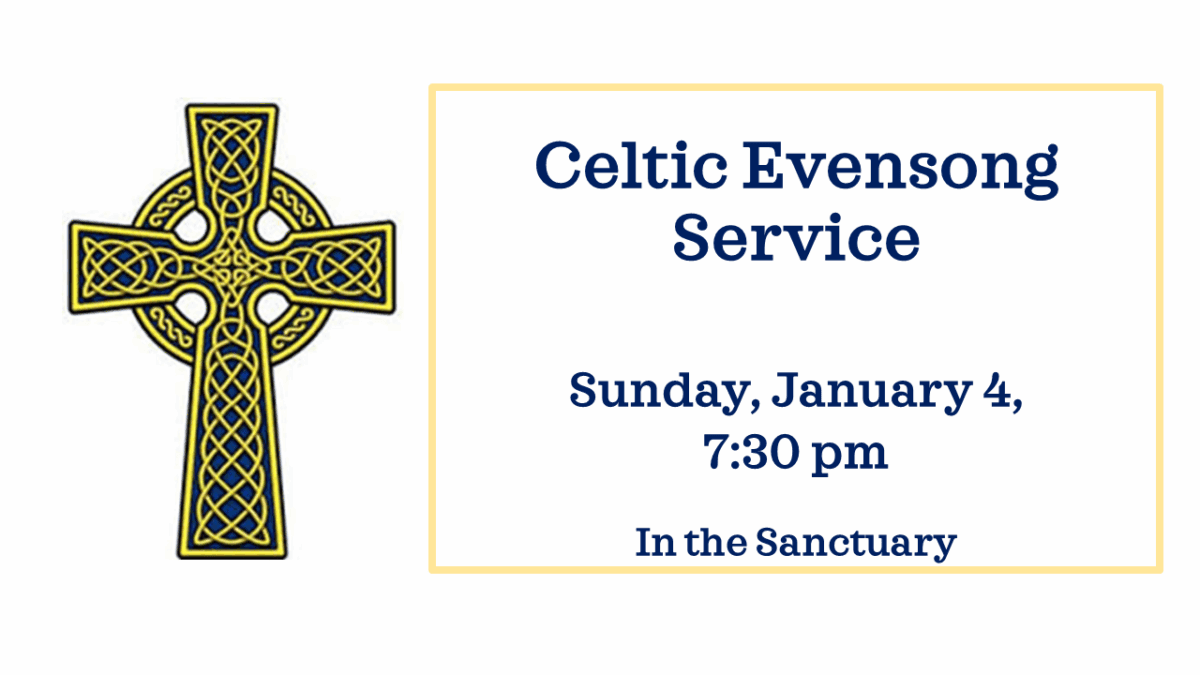 Celtic Evensong Service at 7:30 pm