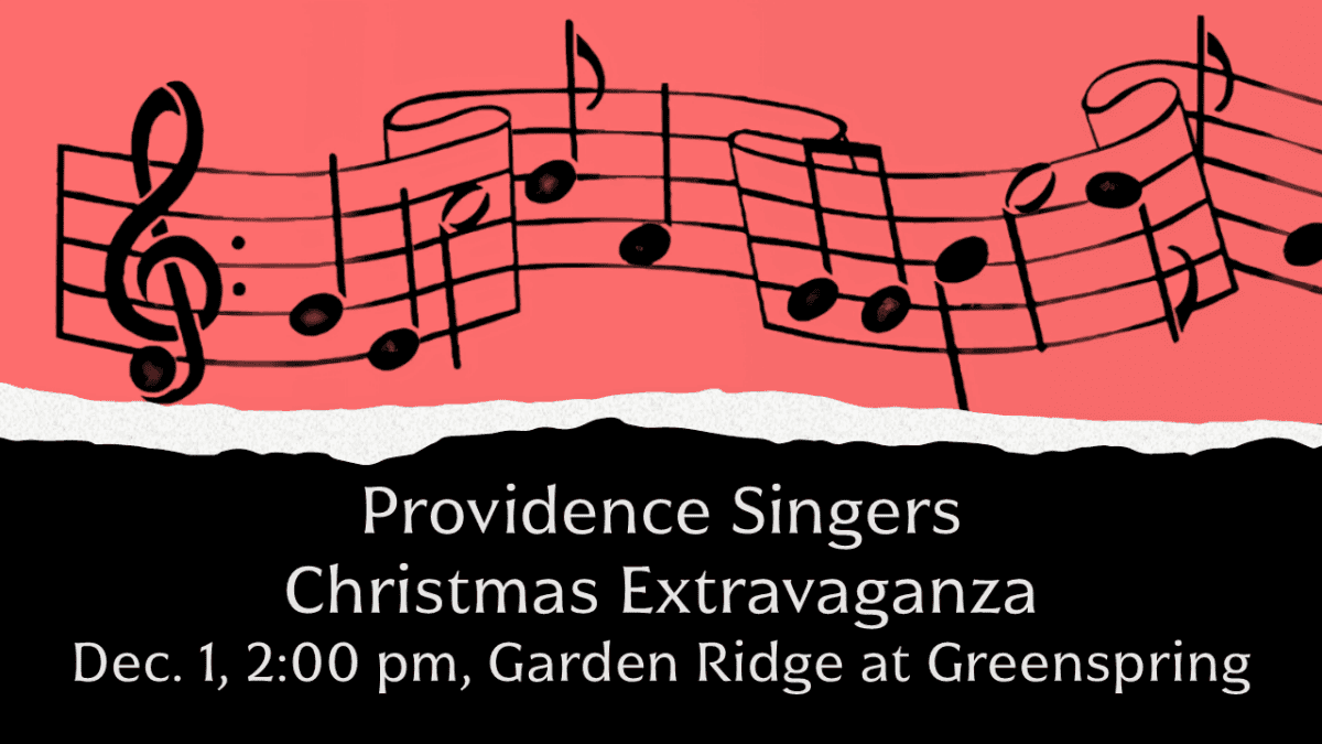 Come Hear Your Providence Singers in their mission outreach to our older community. Their Christmas Extravaganza will be offered December 1 at 2:00 pm at Garden Ridge at Greenspring, 7470 Spring Village Drive, Springfield, VA 22150. An event not to be missed!